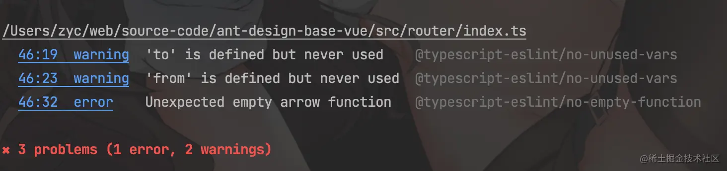 就能看出与配置不符合的报错了 然后挨个修改,或者配置下lint自动修复命令,前期是我们刚搭建可以,后期如果你是对一个已经有悠久历史的项目,还是最好挨个改