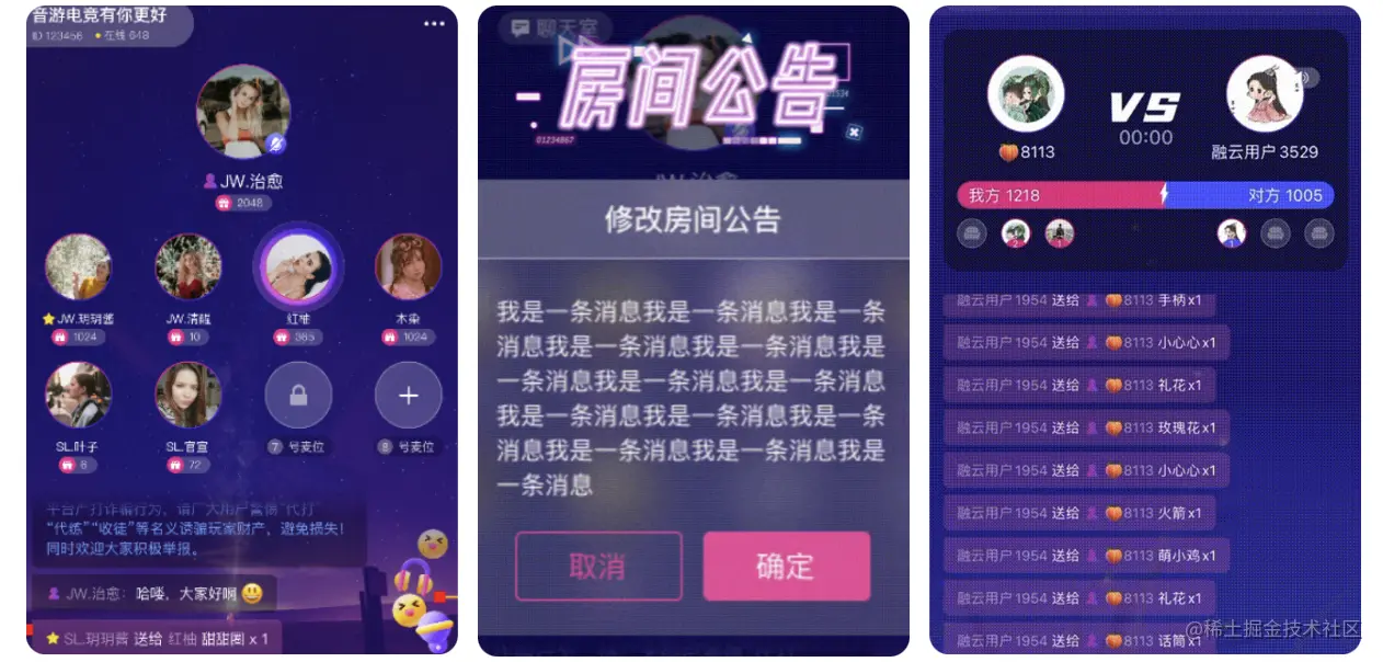 聊天室是直播、语聊房等社交泛娱乐产品必备的组件,它最显著的形态,就是我们常说的“公屏”——用户关系临时、消息内容短小重复的公共聊天频道。