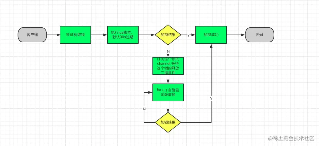 1):尝试获取锁,通过执行加锁Lua脚本来做;