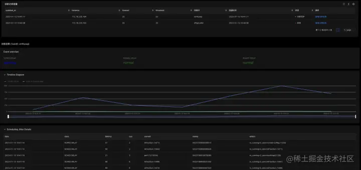 调度抖动诊断:在系统运维场景中,CPU 长时间在 sys 态执行,导致用户态程序得不到调度;系统长时间关中断,导致 CPU 无法正常接收 TICK 中断、引发调度抖动问题。这两种情况下往往伴随着业务进程突发调度延迟,甚至系统短暂 hang。调度抖动记录了调度抖动发生的时间点、发生的次数、和抖动的具体数值,来帮助用户更好的定位该场景下发生的问题。
