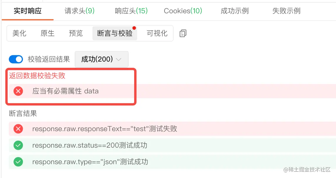 我们可以通过 json-schema 预先定义接口的数据返回格式,当接口完成后,我们可以通过匹配 实际响应结果 和 预先定义的接口格式 ,来发现接口问题。如下图: