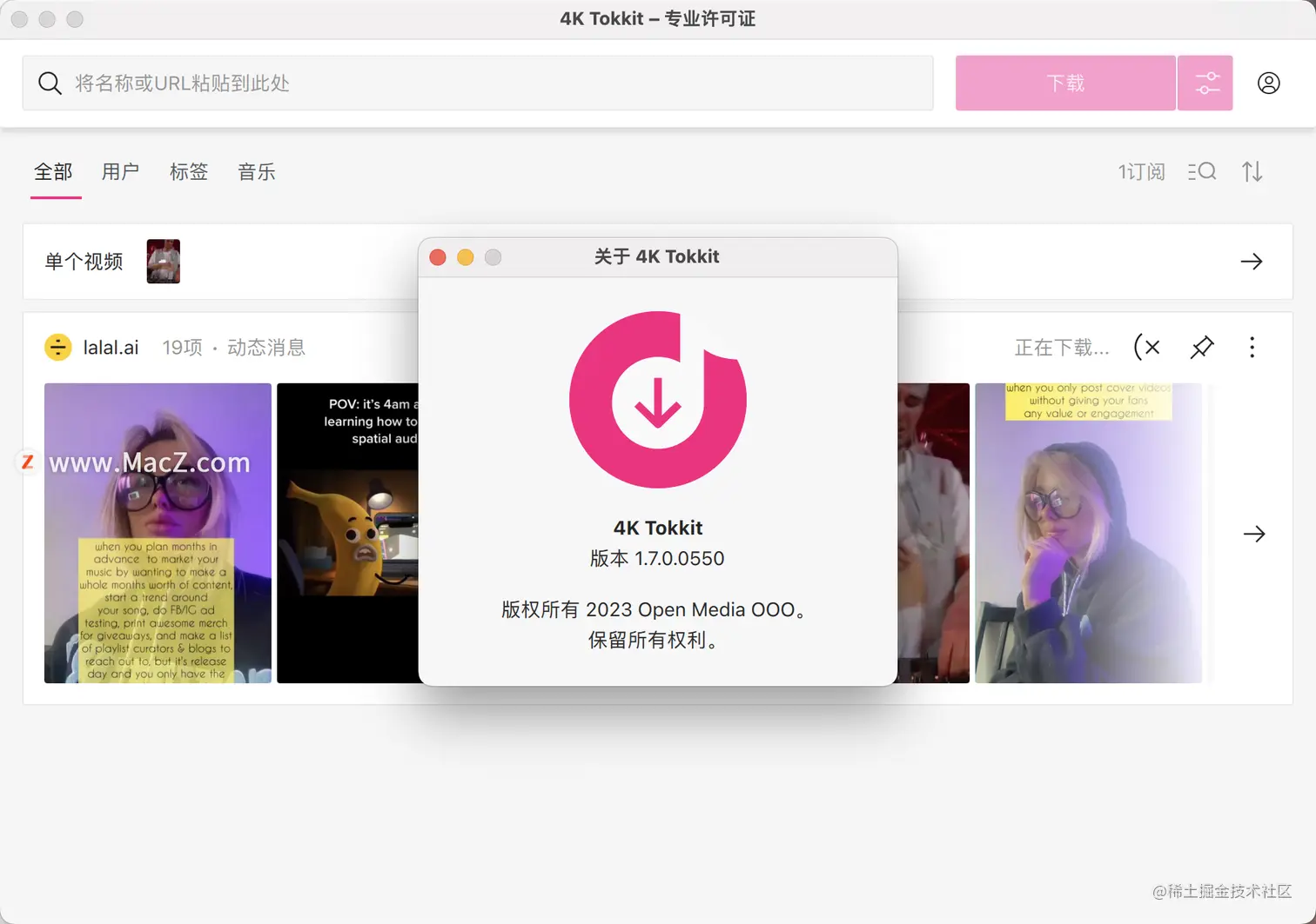 4K Tokkit for Mac是一款强大的TikTok视频下载工具使您能够备份TikTok帐户,保存来自其他TikTok配置文件和哈希标记的视频。此应用程序非常适合那些想要创建最喜爱的短片段的数字画廊、一次抓取多个TikTok视频以及自动从各种TikTok创建者和主题下载新内容的人。