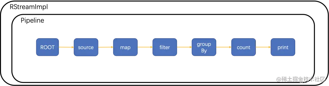 每个逻辑节点都是GraphNode的子类,构建时,将子节点算子加入父节点child集合中,将父节点加入子节点parent集合中。这个构建过程中使用Pipeline均为同一个实例。最终在Pipeline中,形成以root节点为根节点的链表。