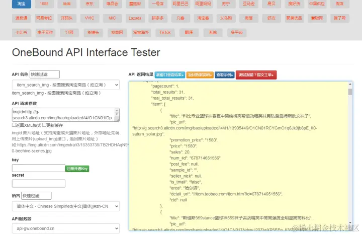 // 本示例代码未加密secret参数明文传输,若要加密请参考:https://open.onebound.cn/help/demo/sdk/demo-sign.php