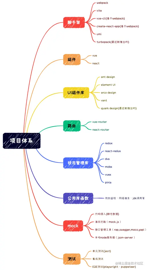以vue框架或react框架为主的项目在脚手架、路由、UI组件库等工具的使用上各有方案。但它们所实现的功能基本相似,只是用法上有所差别。这可能就是为什么前辈们常说,会一种框架,很快就可以上手其他框架的原因吧!