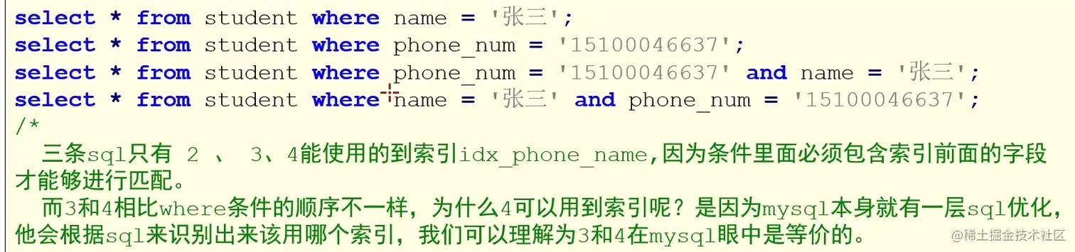 复合索引必须包含索引前面的字段才能够进行匹配