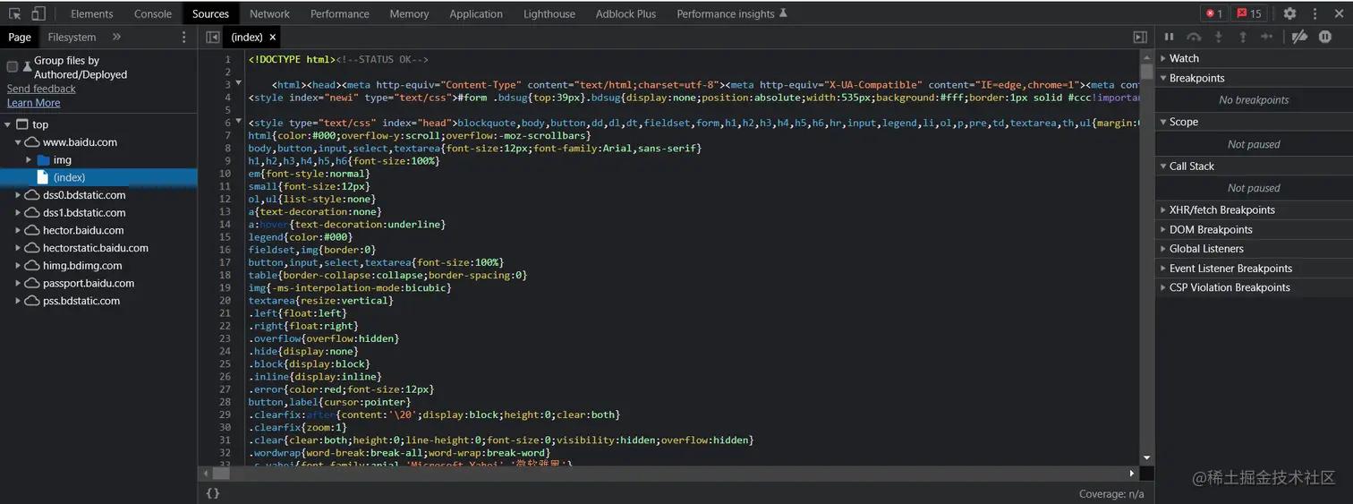 - Breakpoints 可查看断点列表,可通过激活或禁用断点