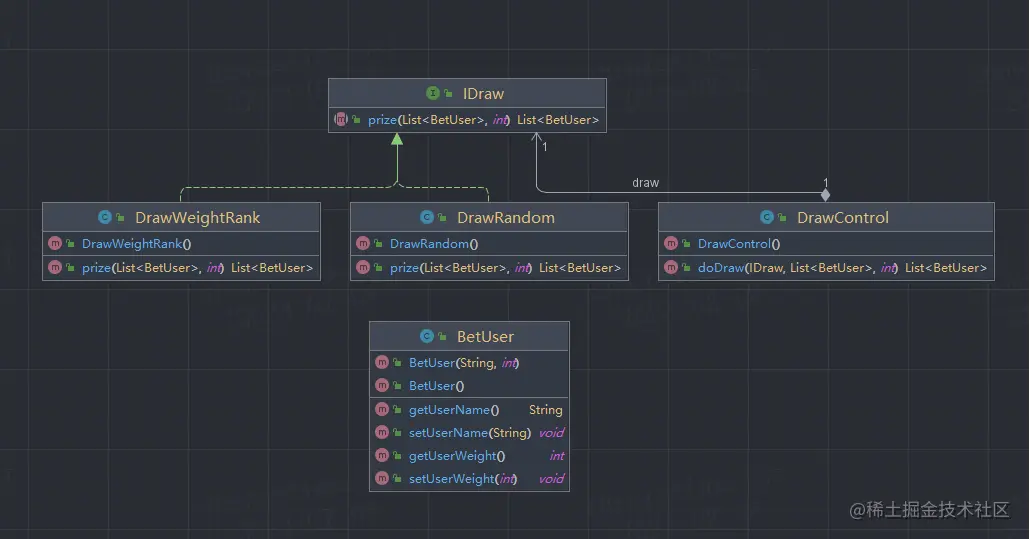 - 抽奖器与抽奖接口 IDraw 是有依赖的