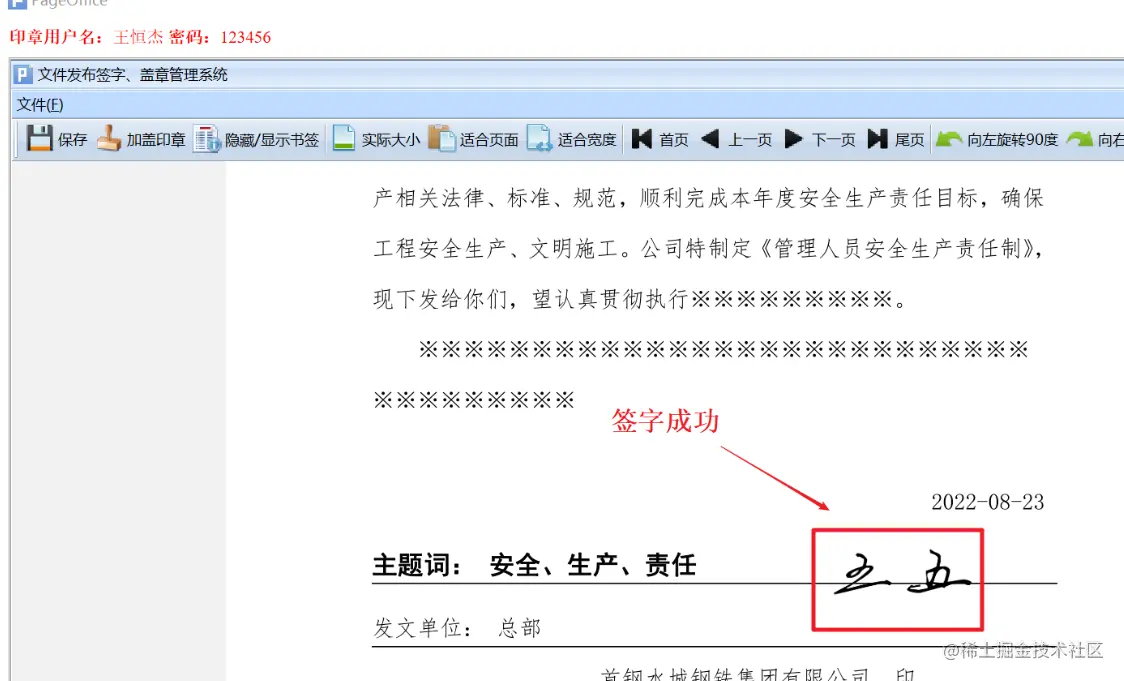 今天公司领导提出一个功能,说实现一个文件的签字+盖章功能,然后自己进行了简单的学习,对文档进行数字签名与签署纸质文档的原因大致相同,数字签名通过使用计算机加密来验证 (身份验证:验证人员和产品所声明的身份是否属实的过程。例如,通过验证用于签名代码的数字签名来确认软件发行商的代码来源和完整性。)数字信息,如文档、电子邮件和宏。数字签名有助于确保:真实性,完整性,不可否认性。目前市面上的电子签章产品也是多样化,但是不管是哪个厂家的产品,在线签章简单易用,同时也能保证签章的有效性,防篡改,防伪造,稳定,可靠就是好产品。