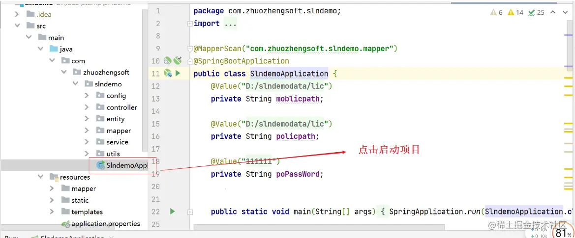- 下载项目源码后,使用idea导入slndemo项目并运行