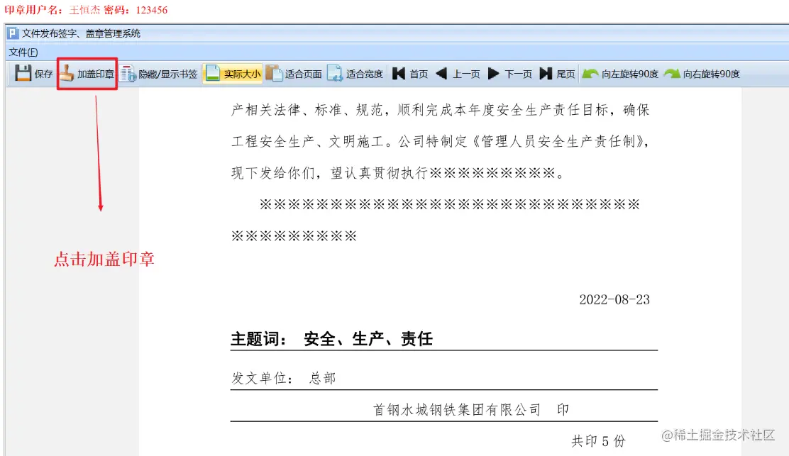 点击加盖印章