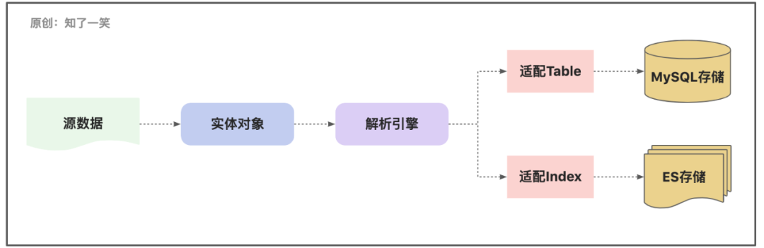 在数据处理的逻辑中,经常有这样一种场景,同一份数据要动态推送到多种数据源中存储,比如常见的MySQL表和ES索引双写模式,这就需要对实体对象做不同的解析逻辑;