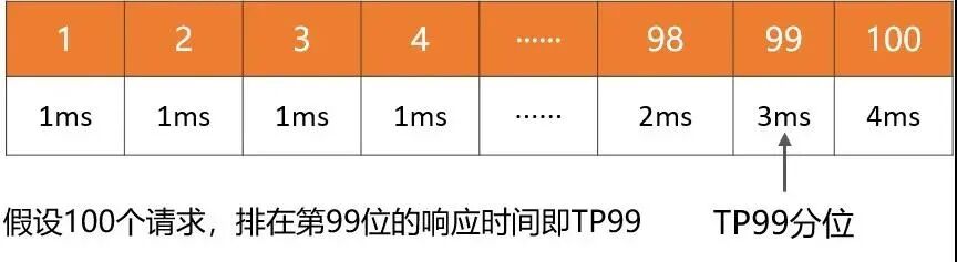 TP90、TP99等分位值:将响应时间按照从小到大排序,TP90表示排在第90分位的响应时间, 分位值越大,对慢请求越敏感。