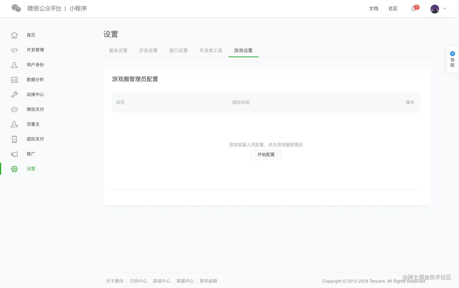 开发者可以在后台指定客服人员维护游戏圈,设置路径:小程序后台 => 设置 => 游戏设置