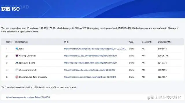 同时在获取ISO页面上,能够根据下载者IP推荐下载源: