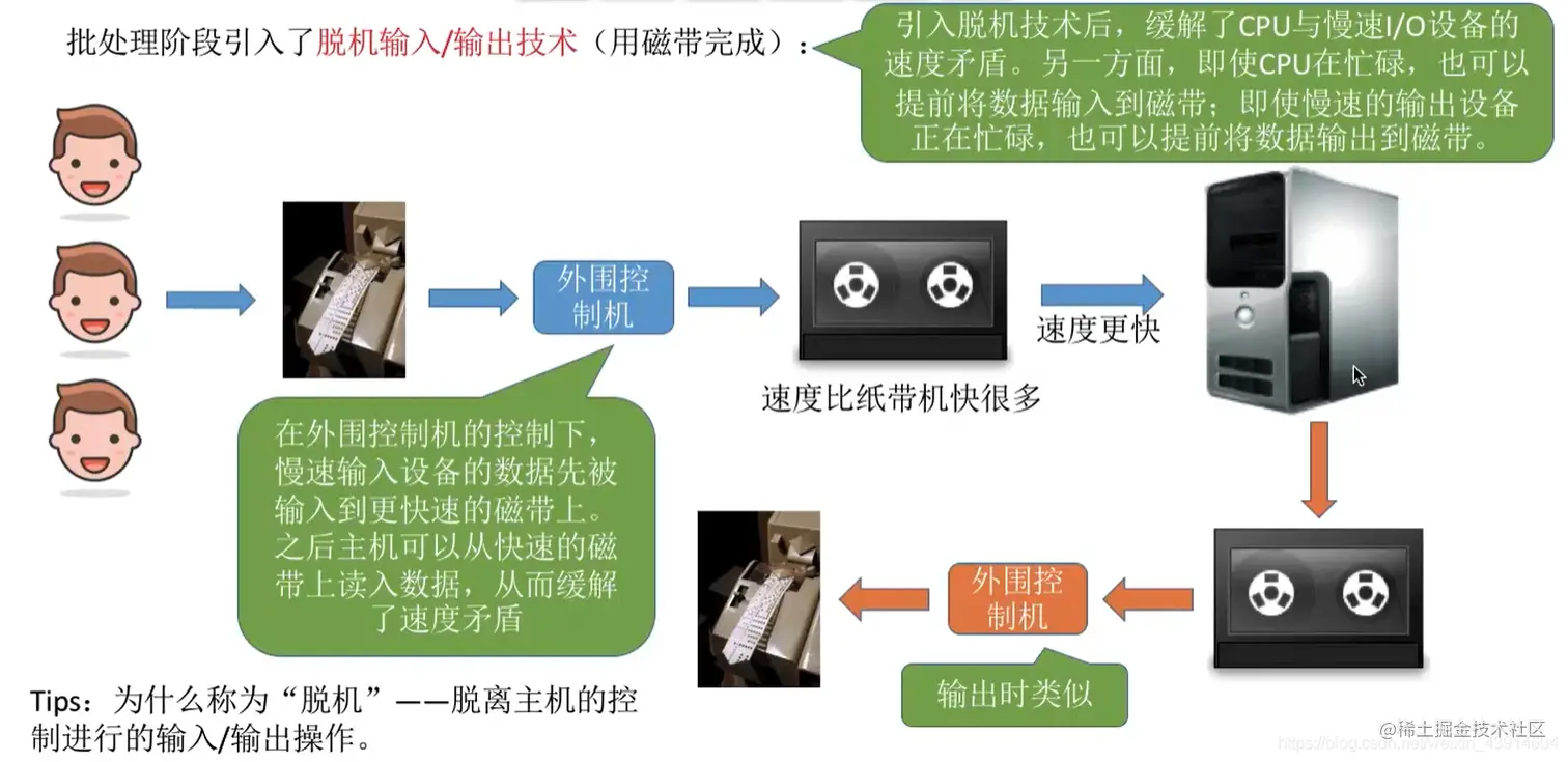 CPU可以把要输出的数据快速地放入缓冲区,之后就可以做别的事,慢速的I/O设备可以慢慢从缓冲区取走数据,数据输入时类似