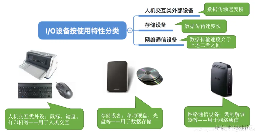 人机交互类外部设备:数据传输速度慢,鼠标、键盘、打印机等——用于人机交互