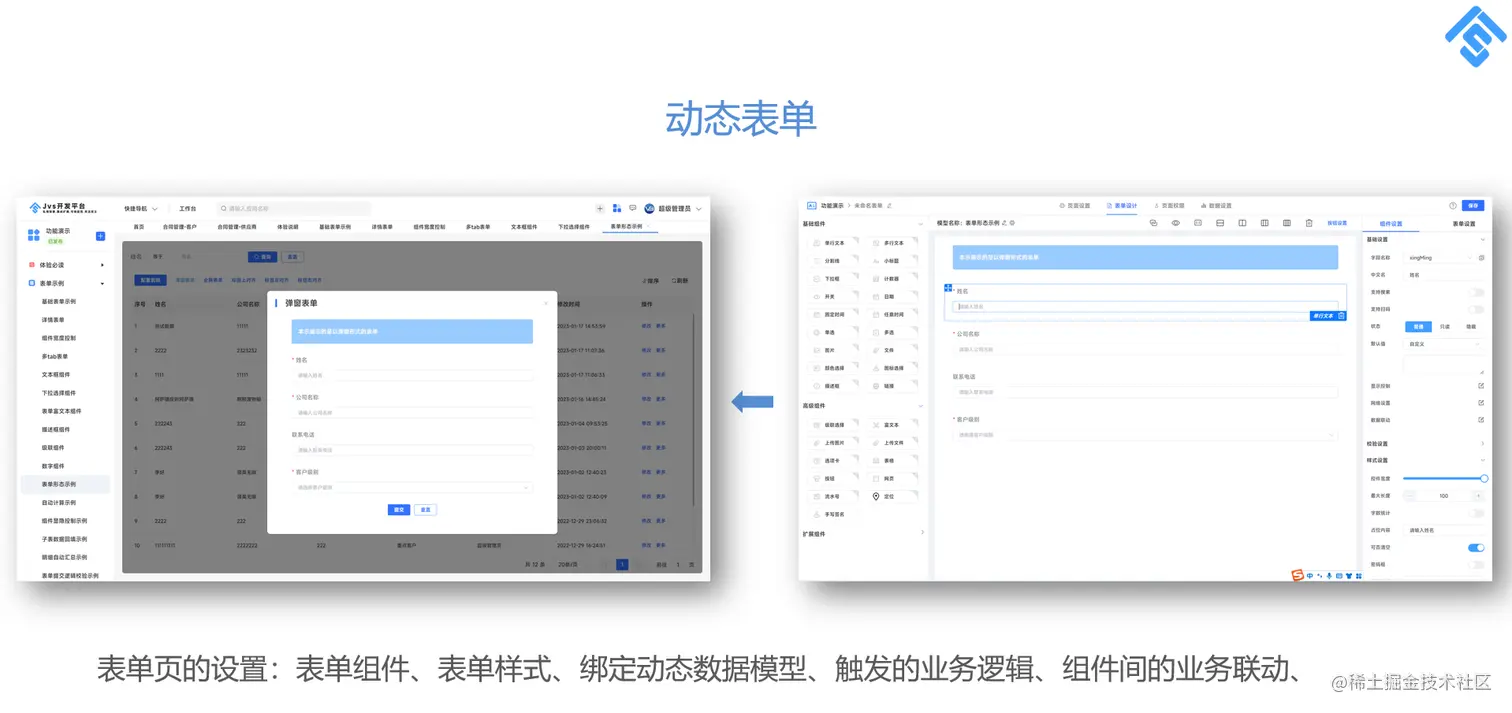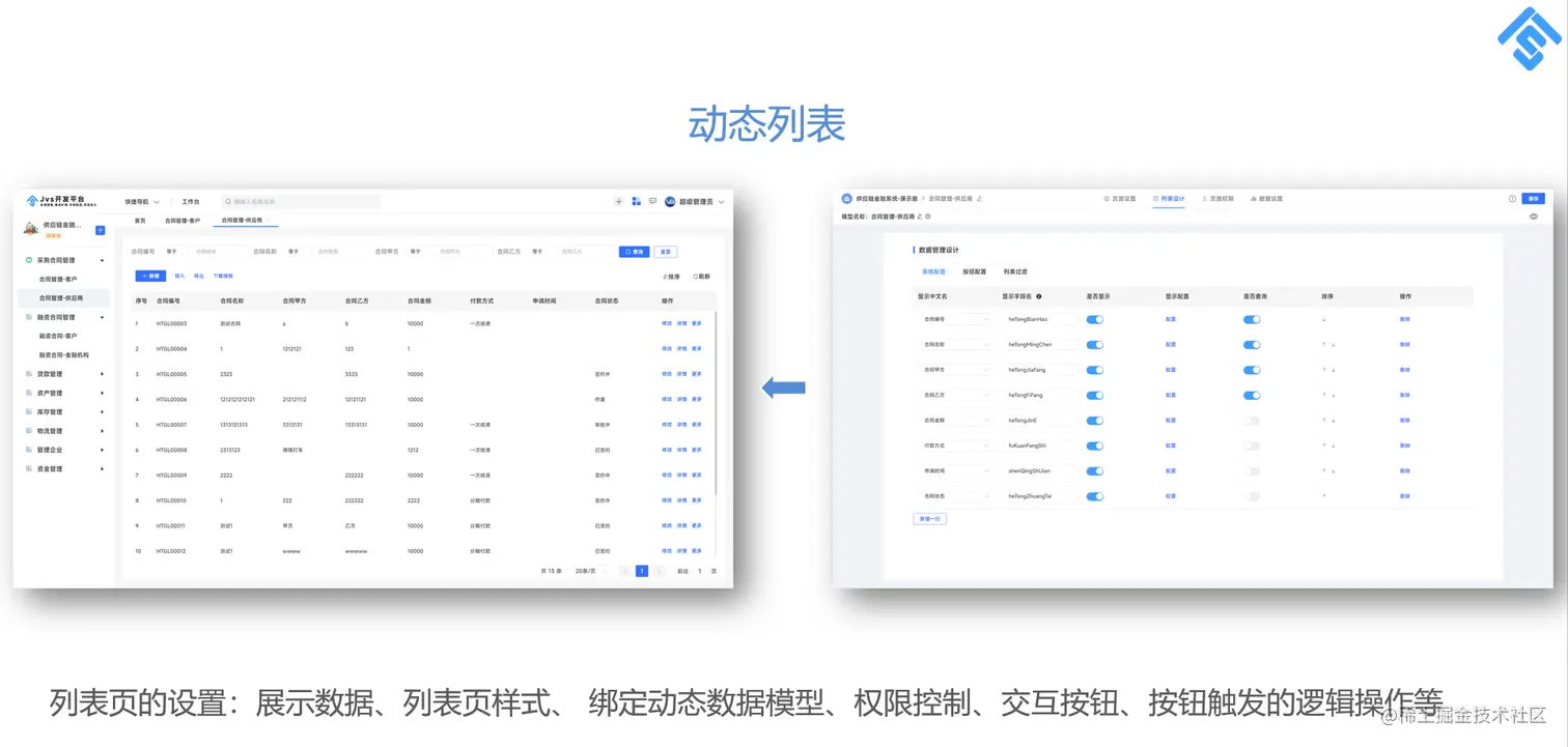 这里可以实现列表页的配置,表单的配置,流程的配置,逻辑数据处理的配置,图表展现,报表的配置,基本上产品经理可以快速完成 各种界面和简单的业务逻辑的配置,在进入交付阶段后,有技术人员做补充配置。
