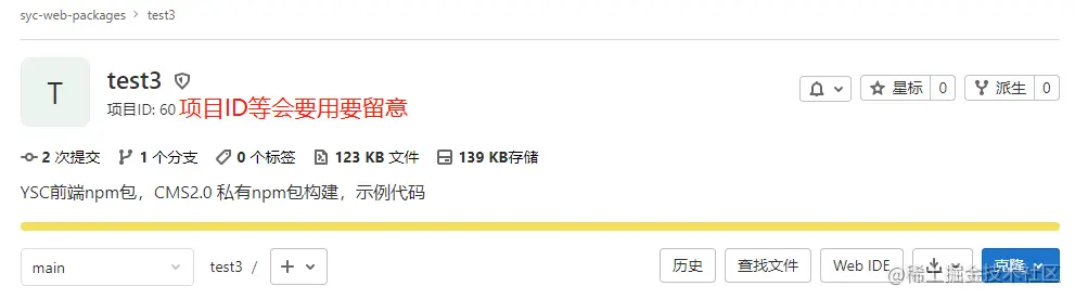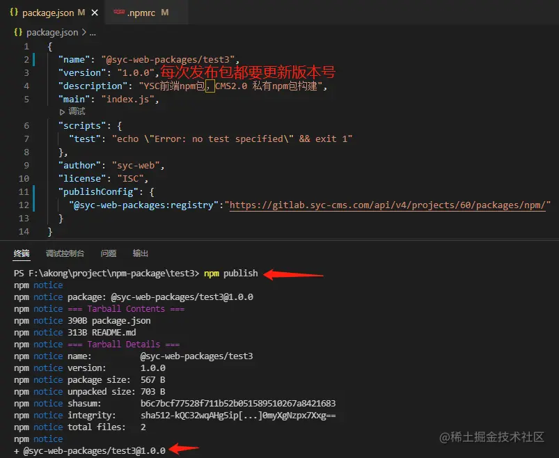 输入命令设置 npm 配置:npm config set -- '//gitlab.syc-cms.com/api/v4/projects/60/packages/npm/:_authToken' "这里填令牌"