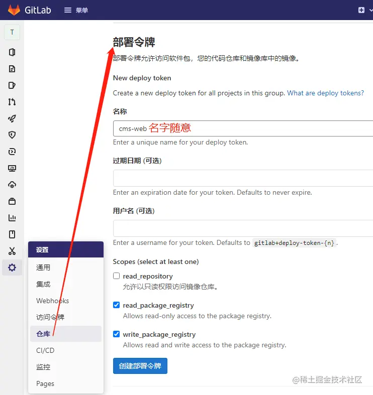 设置群组令牌:npm config set -- '//gitlab.syc-cms.com:8443/api/v4/packages/npm/:_authToken' "群组令牌"