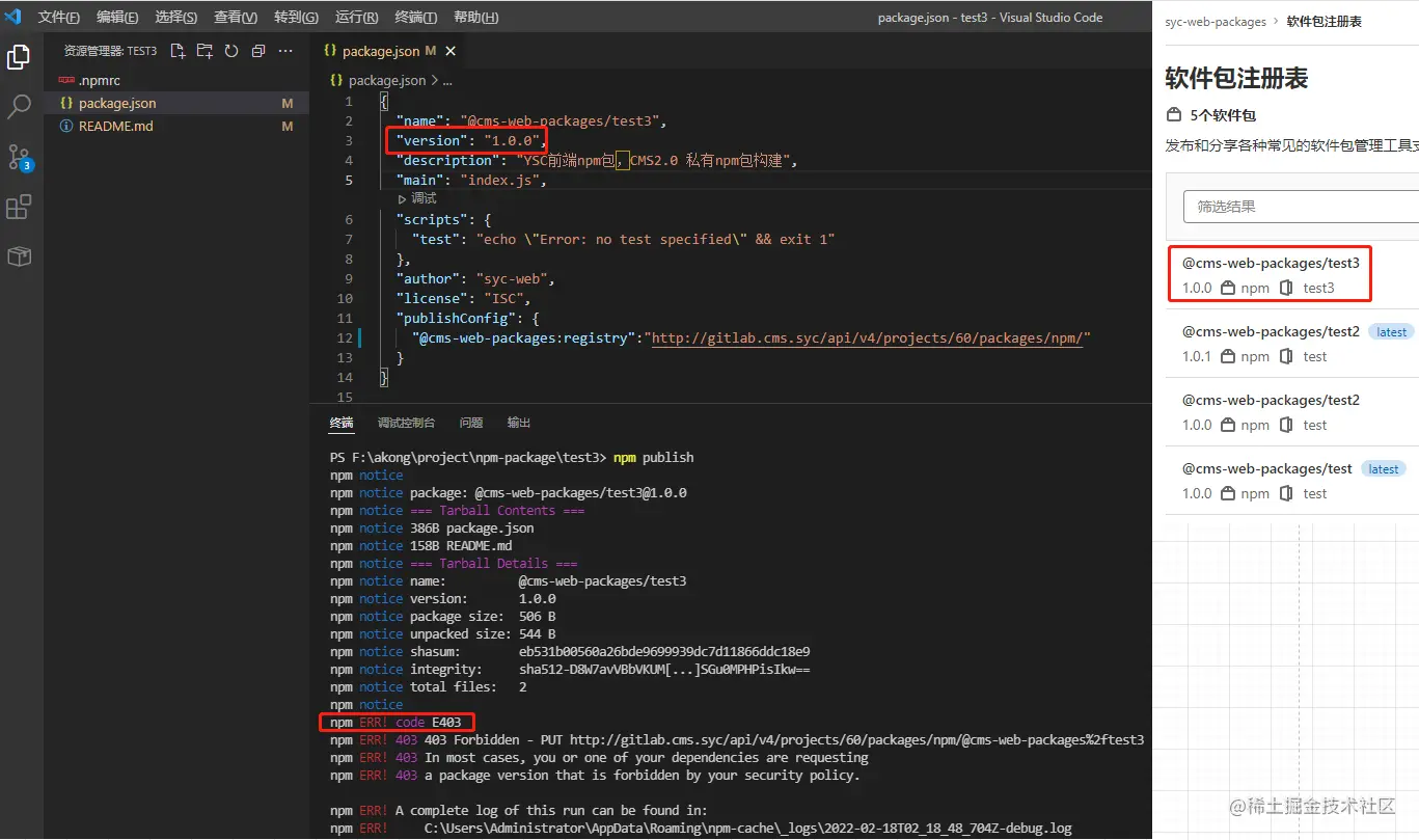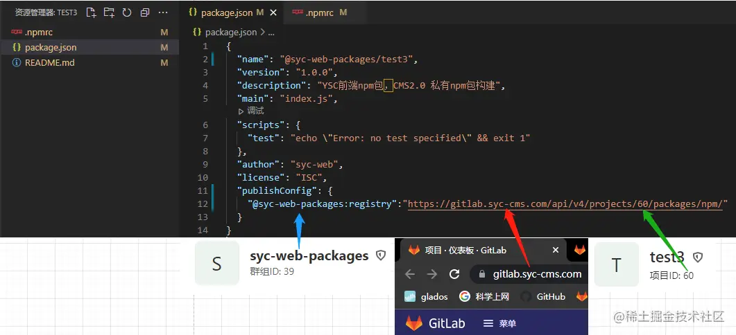 项目 package.json 文件 publishConfig 字段添加以下内容: "@syc-web-packages:registry":"gitlab.syc-cms.com/api/v4/proj…"