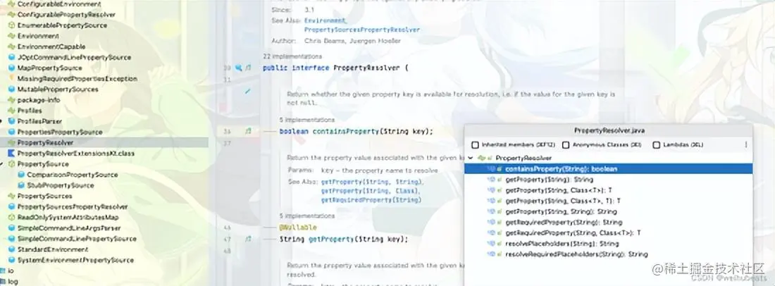 可以看到实现类是非常多的。不过实际所有的配置获取都是封装在最上层的接口 PropertyResolver 中的