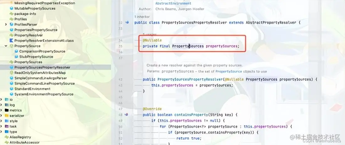PropertySourcesPropertyResolver 中拥有的 PropertySources 最后使用的也还是 PropertySource 类,通过遍历 PropertySource 集合