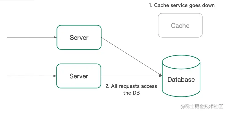 - 缓存服务宕机,所有请求都直接访问数据库。
