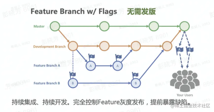 基于智能发布的CI/CD,功能上线与生效分离,使用者可通过开关控制功能何时生效,整个过程可持续集成开发,迭代速度明显高效;可一站式托管不同端(App、小程序、Web等)的Feature,高效管理应用下的不同Feature。