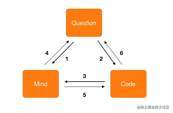 上图的Question是指问题;Mind是指想法,或者解决问题的思路;Code是指代码实现。