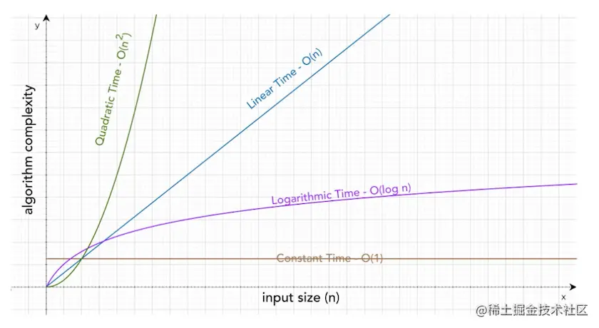 常见的时间复杂度有:常数阶O(1),对数阶O(log n),线性阶 O(n),线性对数阶O(nlog n),平方阶O(n^{2}),立方阶O(n^{3}),!k次方阶O(n^{k}),指数阶 O(2^{n})}。随着问题规模n的不断增大,上述时间复杂度不断增大,算法的执行效率越低。