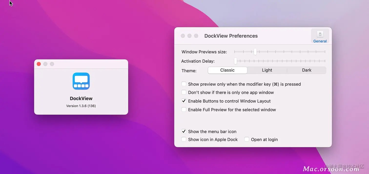 DockView Mac版是一个实用程序,可在macOS Dock中添加所选应用程序窗口的预览。您只需要将鼠标移到其图标,就会显示其所有窗口的缩略图。通过单击您需要的那个,您将立即转到它。通过窗口缩略图,您可以快速关闭,缩小和管理窗口。