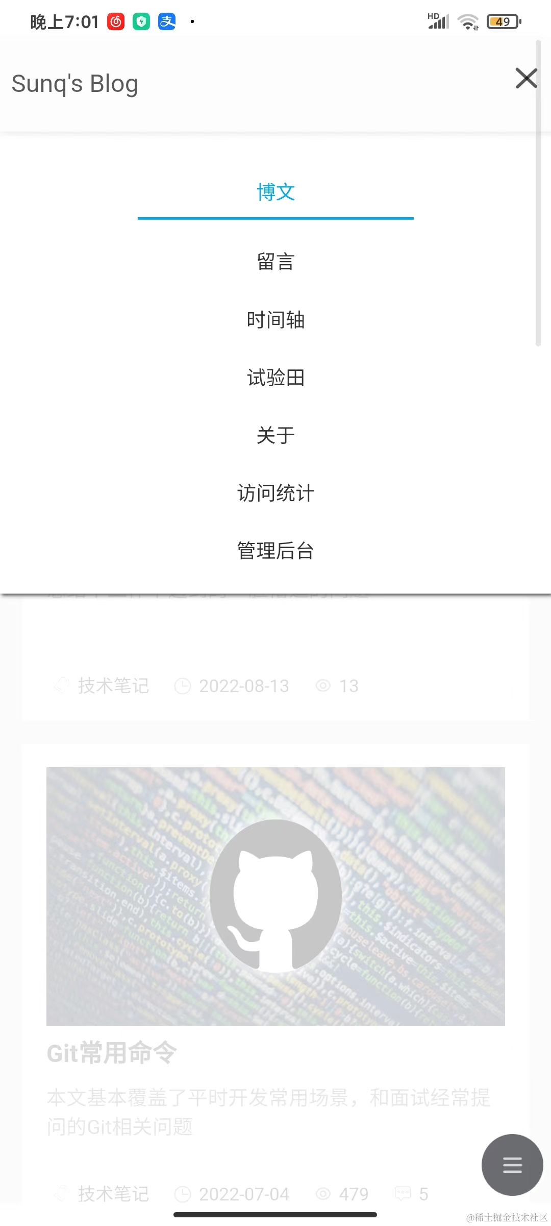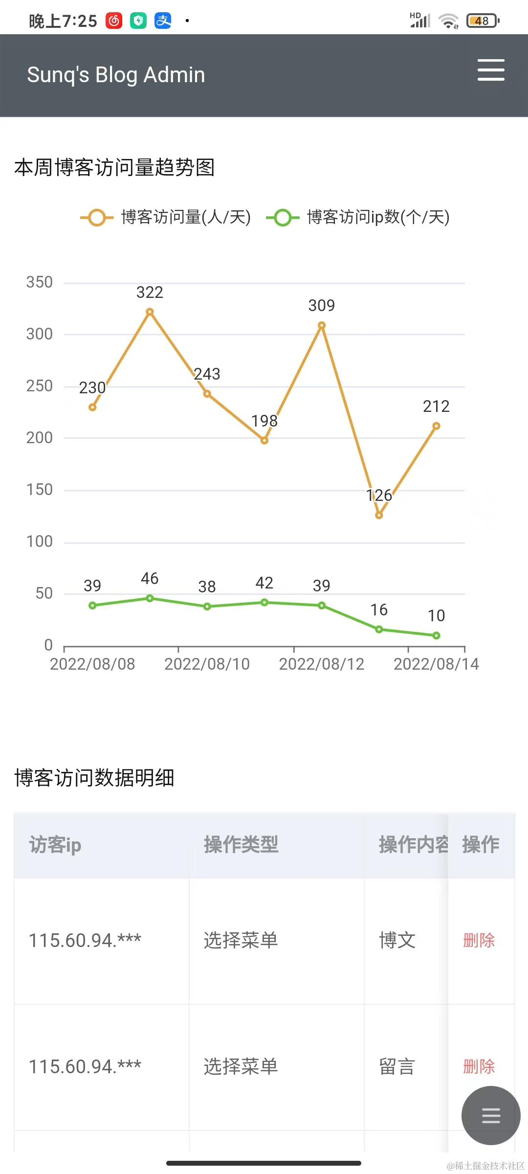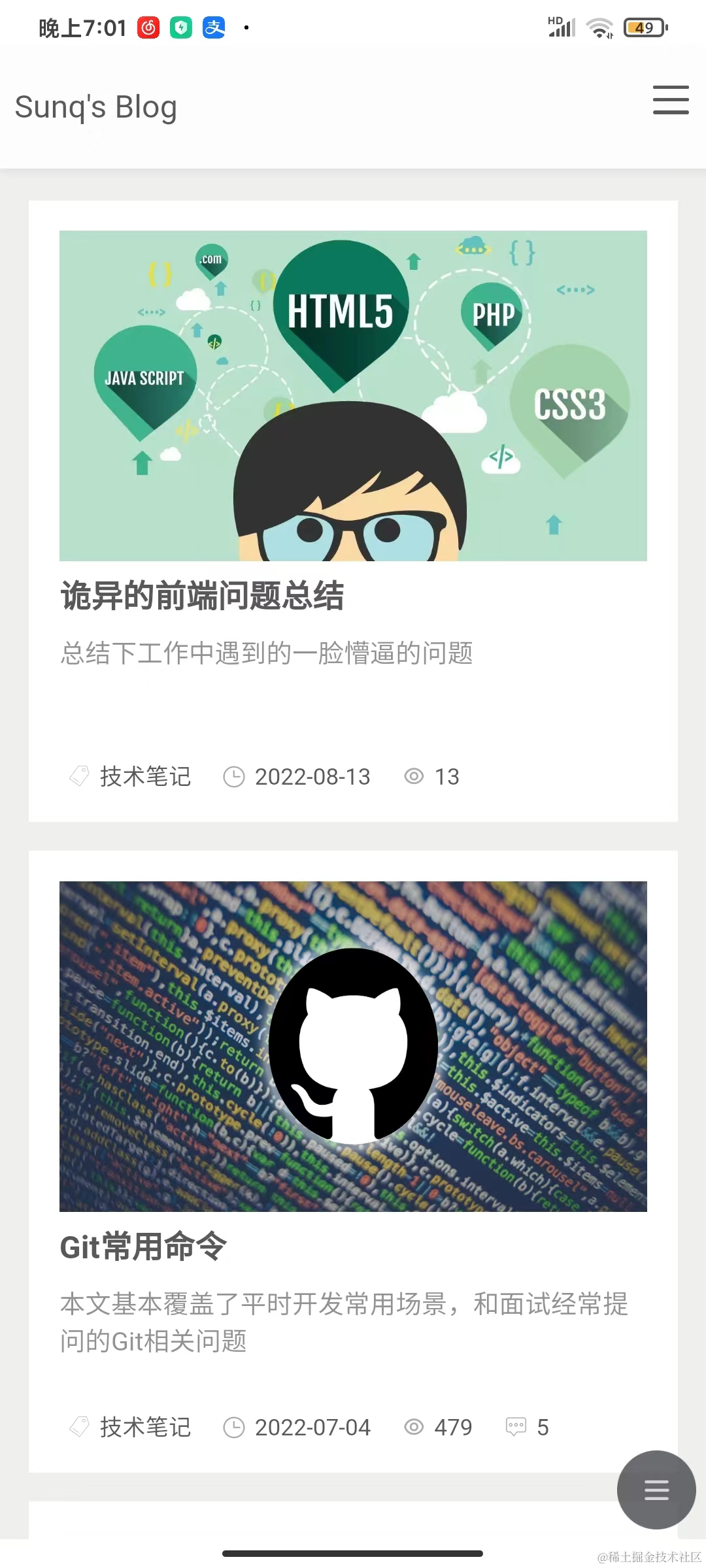 下面的博客是我自己开发的,我不懂UI设计,页面都是自己凭感觉拼凑出来的。我的想法是移动端屏幕较小,能展示的内容有限。移动端需要突出重点,放弃一些辅助功能。