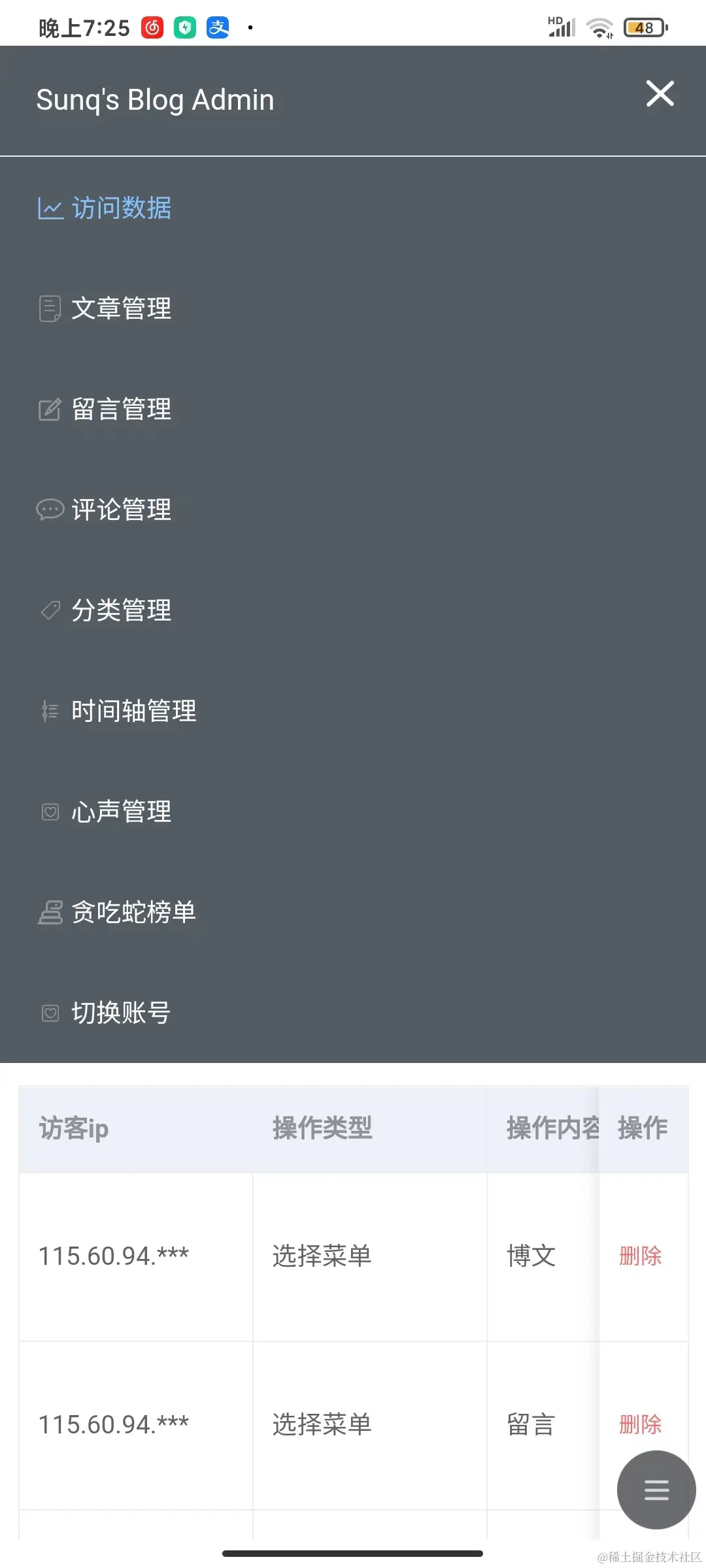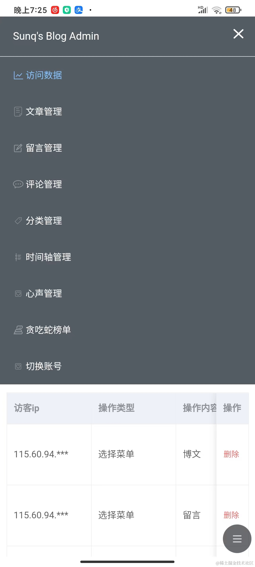对于管理后台的移动端适配,我觉得主要在菜单这块。PC端管理后台一般都是侧边导航栏,移动端当然是放不下的,所以为了响应式展示,页面的整个架构要注意调整。