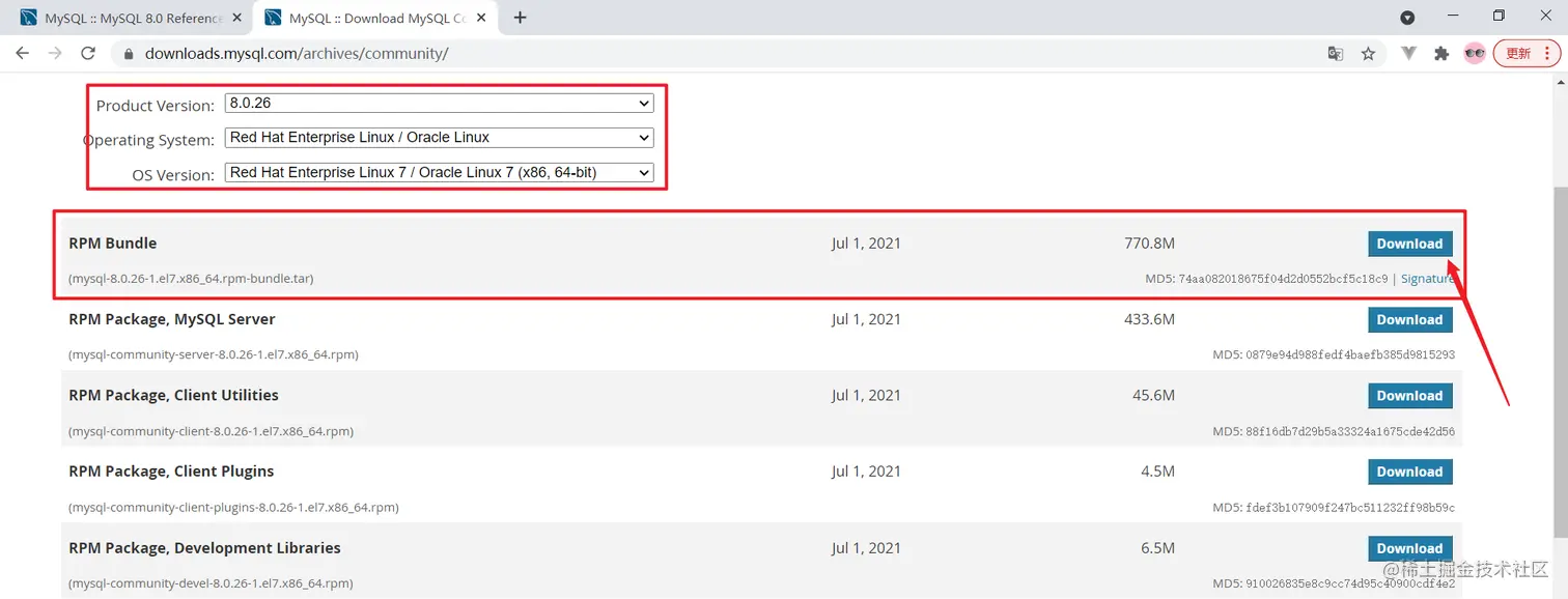 tar -xvf mysql-8.0.26-1.el7.x86_64.rpm-bundle.tar -C mysql