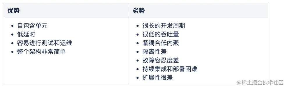 单体架构优劣势: