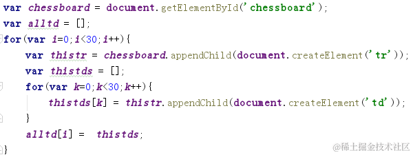 先建一个(一行tr)装有30个td的数组,再将30行全部放在一个新的数组里,这样就是二维数组了。通过行列就能定位到该td。