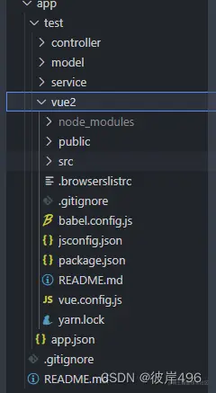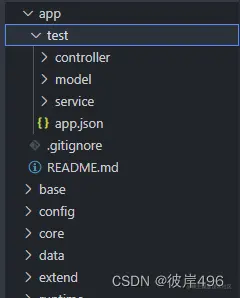 如图所示,test应用中存在3个目录以及app.json,文件controller,model,service这里不做说明,主要讲解app.json,下面是app.json配置信息