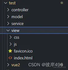 修改完成后使用 npm run build 打包,这时会生成dist文件夹,将dist文件夹重命名为view,移动至test目录下,或者手动创建view目录,将dist下所有文件复制或移动到view中。
