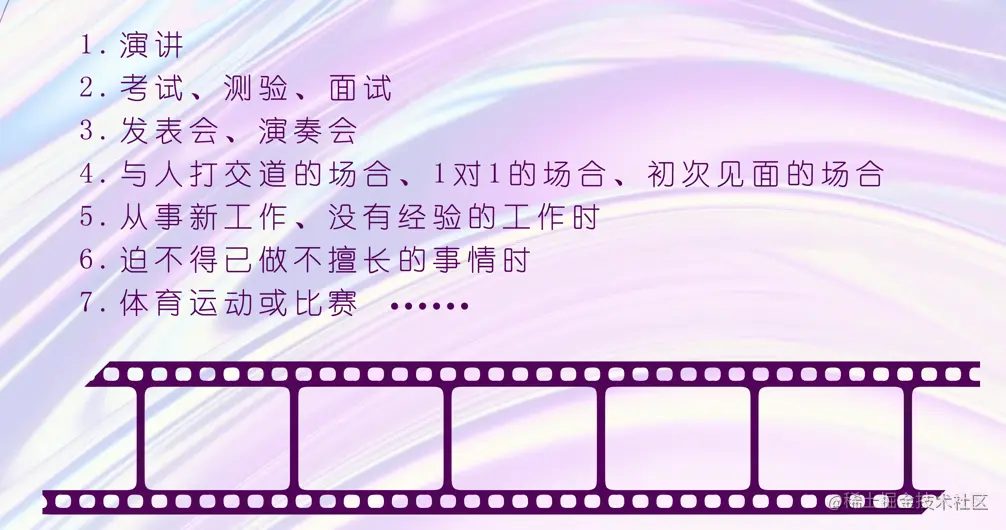 我们再来看第二点,紧张无时不有。在什么场合会容易感到紧张呢?