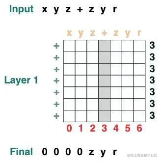 (请注意:在原始论文中,他们使用一个平均聚合操作并且展示了一个巧妙的结构,其中平均聚合能够代表总和计算。RASPy 默认情况下使用累加来使其简单化并避免碎片化。实际上,这意味着 raspy 可能低估了所需要的层数。基于平均值的模型可能需要这个层数的两倍)