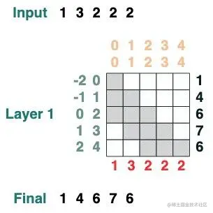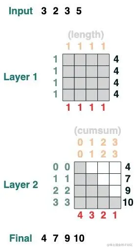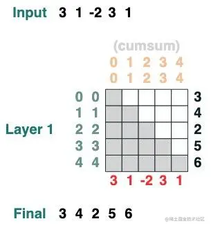 这里有个 2 层 transform 的例子,第一个对应于计算长度,第二个对应于累积总和。