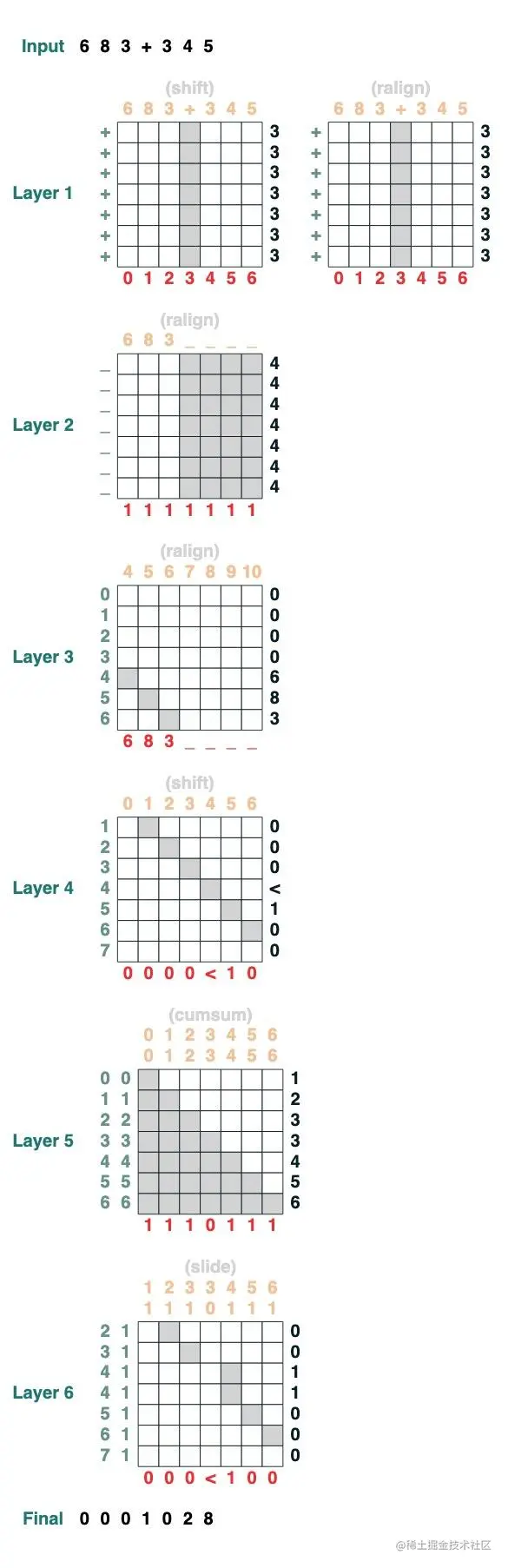 使用这个函数库,我们可以编写完成一个复杂任务,Gail Weiss 给过我一个极其挑战的问题来打破这个步骤:我们可以加载一个添加任意长度数字的 Transformer 吗?