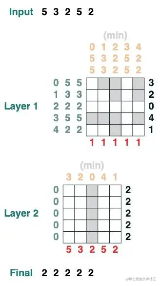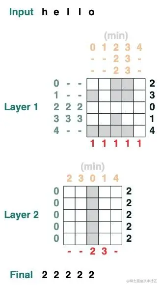 计算序列的最小值。(这一步开始变得困难,我们版本用了 2 层注意力机制)