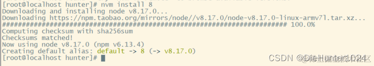 安装完成后 nvm use 版本号 ,再运行node -v查看安装情况