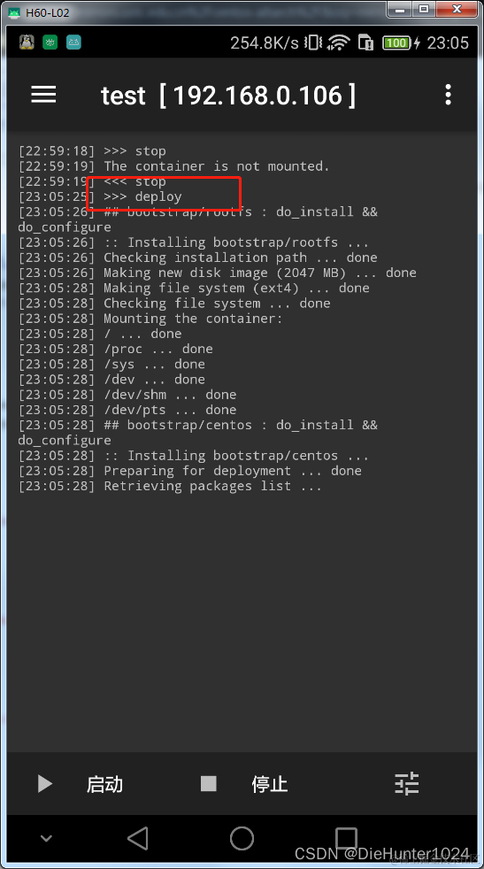 等待一段时间后,会出现 <<< deploy 就说明安装完成,先运行卸载操作