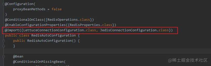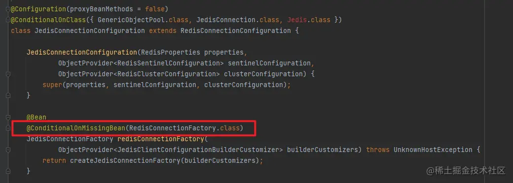 如果扫描发现有 lettuce 那么就用 lettuce 的 RedisConnectionFactory,而后面再加载 jedis 时,会基于@ConditionalOnMissingBean(RedisConnectionFactory.class) 来保证 jedis不会被注入,反之就会被注入。
