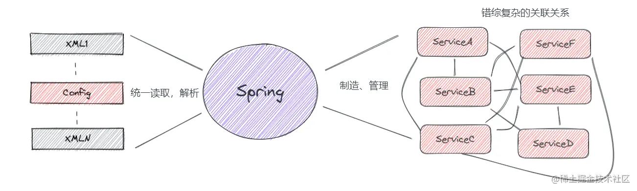 犹记我当年初学 Spring 时,还需写一个个 XML 文件,当时心里不知所以然,跟着网上的步骤一个一个配置下来,配错一个看着 error 懵半天,不知所谓地瞎改到最后能跑就行,暗自感叹 tmd 这玩意真复杂。