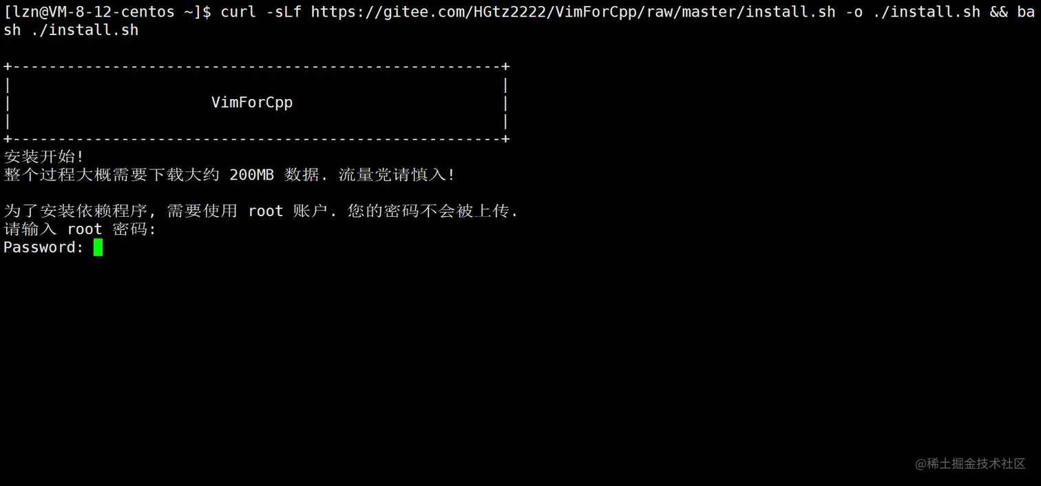 我们可以直接用大神配置好的vim,输入以下命令: curl -sLf https://gitee.com/HGtz2222/VimForCpp/raw/master/install.sh -o ./install.sh && bash ./install.sh