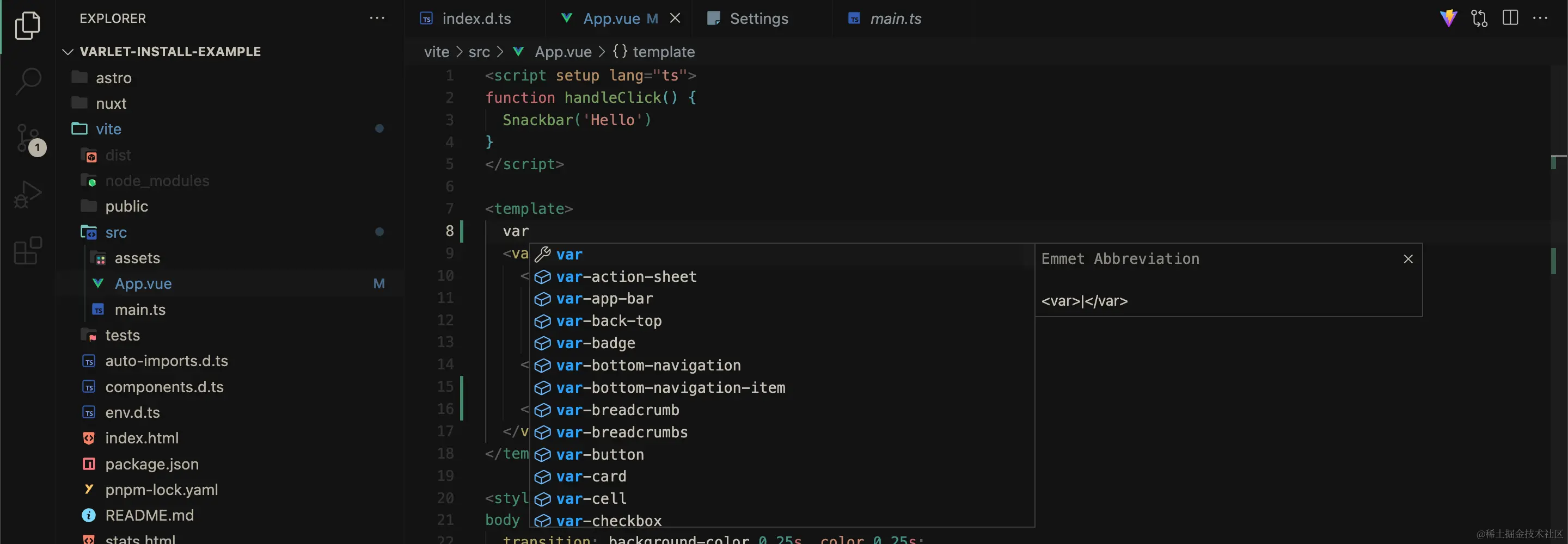 VsCode 插件市场搜索 varlet-vscode-extension。